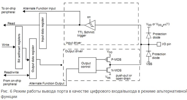 цифровой вход в режиме альтернативной функции (используется как вход для различных периферийных модулей) (см. рис. 6).