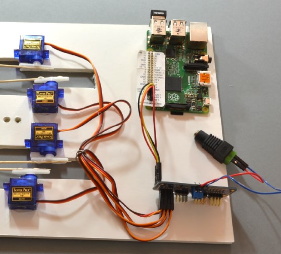 Одновременная работа четырех сервоприводов требует применения для их питания отдельного батарейного блока. Это необходимо для уменьшения влияния помех от двигателей на работу Raspberry Pi.